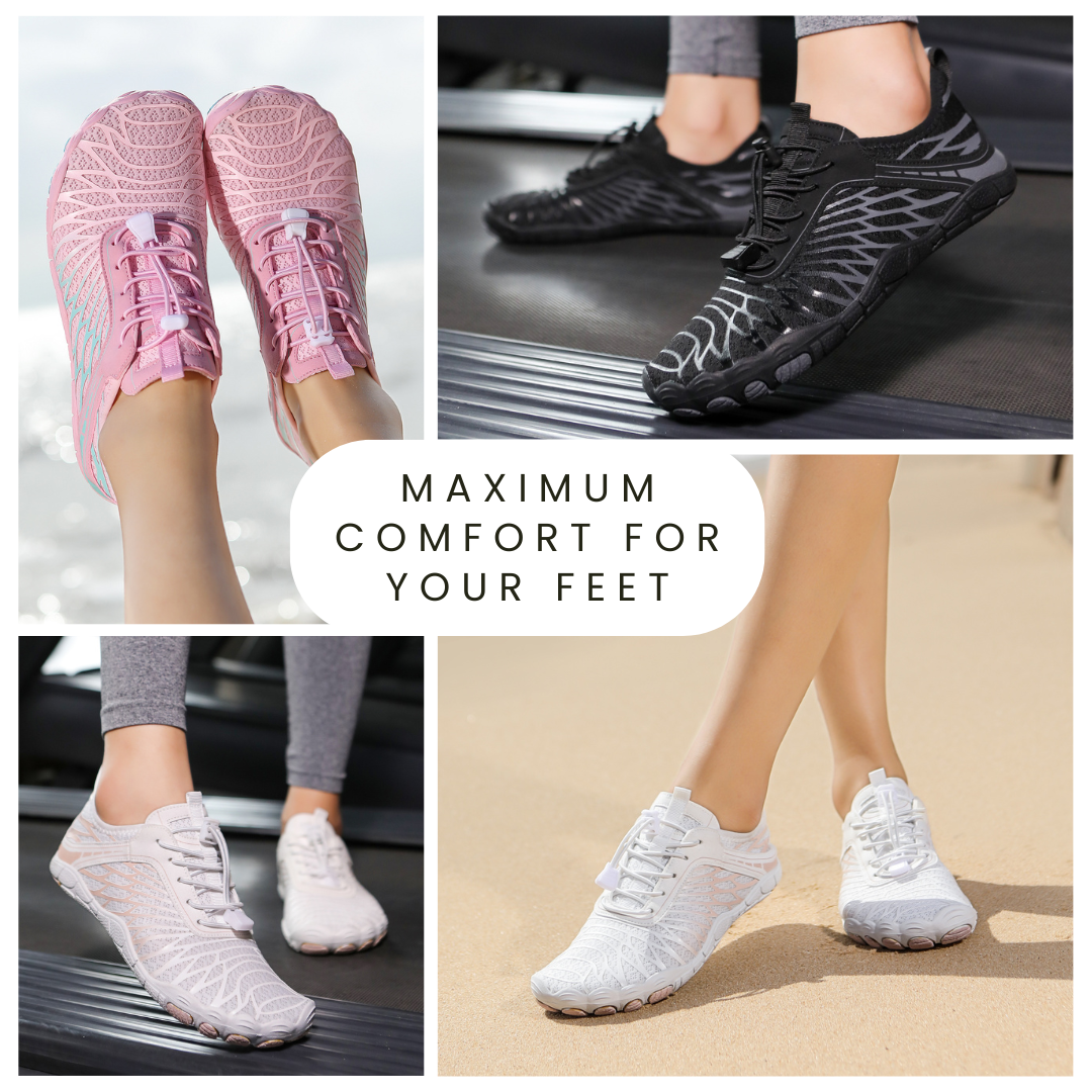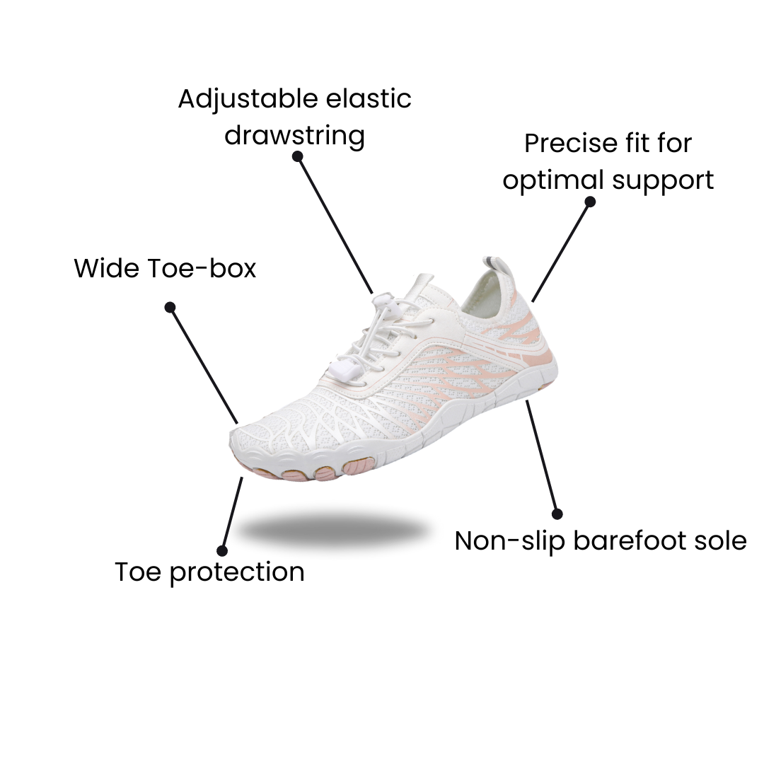 Our solution: FootEase Pro is an ergonomic, orthopedic and pain-relieving barefoot shoe that gives your feet space and strengthens your natural foot muscles to prevent misalignments. The double plus: FootEase Pro is also suitable for the gym, the next hike, yoga and many other sporting activities.