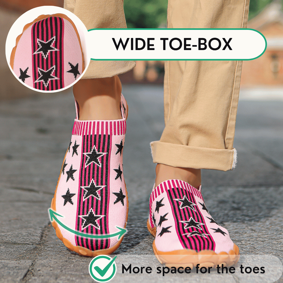 Wide toe box: Allows natural toe spread and prevents foot squeezing.
