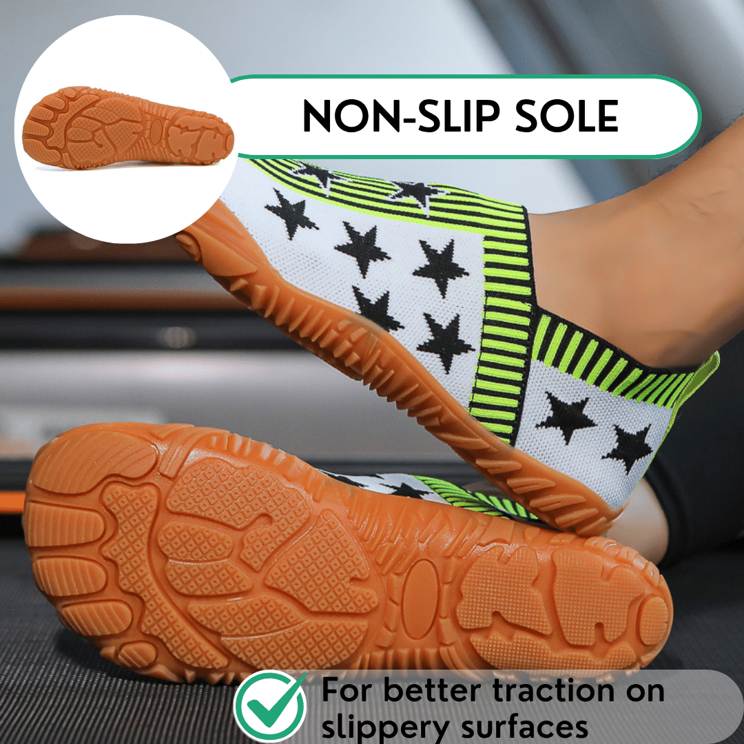 Non-slip design: Provides secure grip on trails, pavement, and gym floors.