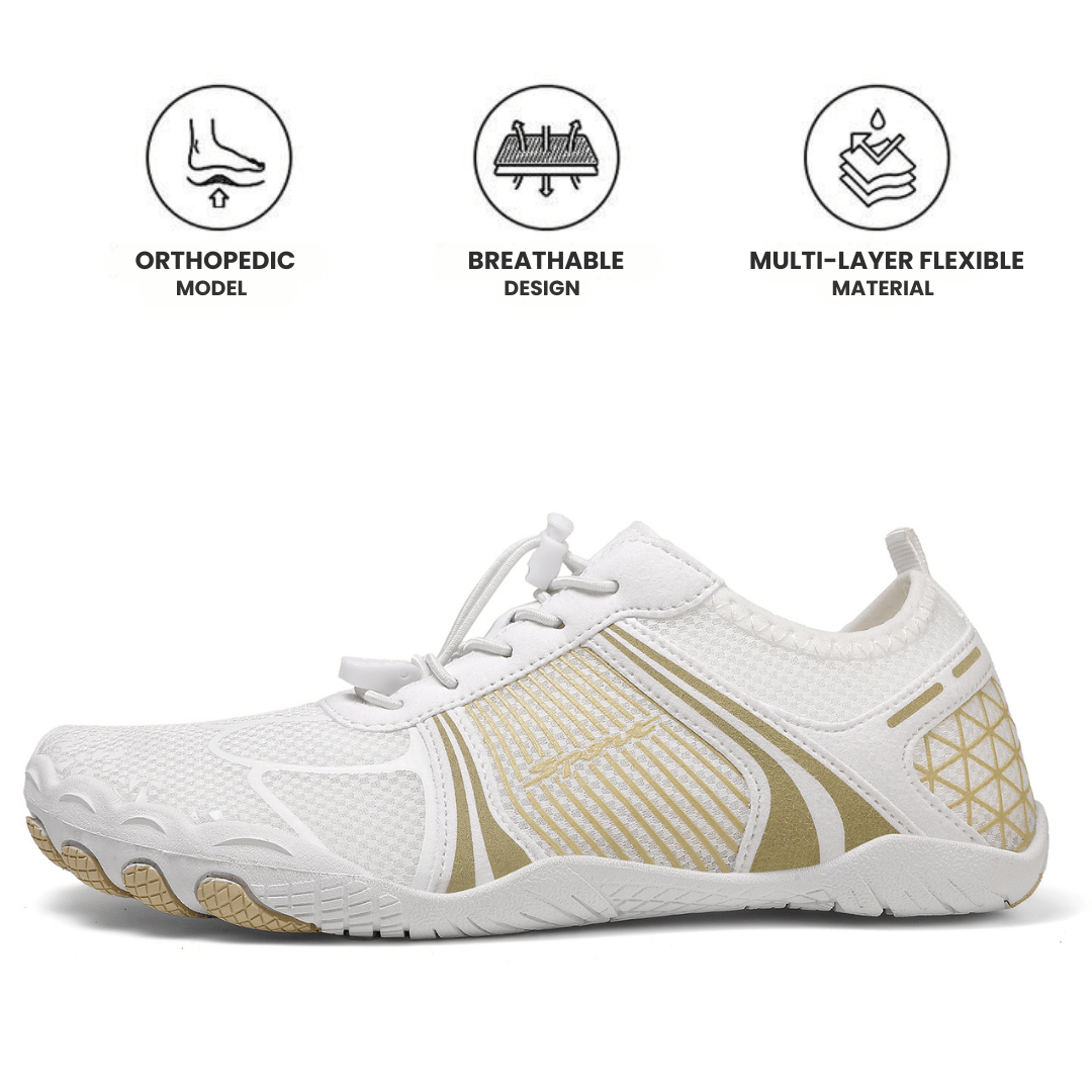 Our solution: Breeze Pro is an ergonomic, orthopedic and pain-relieving barefoot shoe that gives your feet space and strengthens your natural foot muscles to prevent misalignments. The double plus: Sport 2.0 is also suitable for the gym, the next hike, yoga and many other sporting activities.