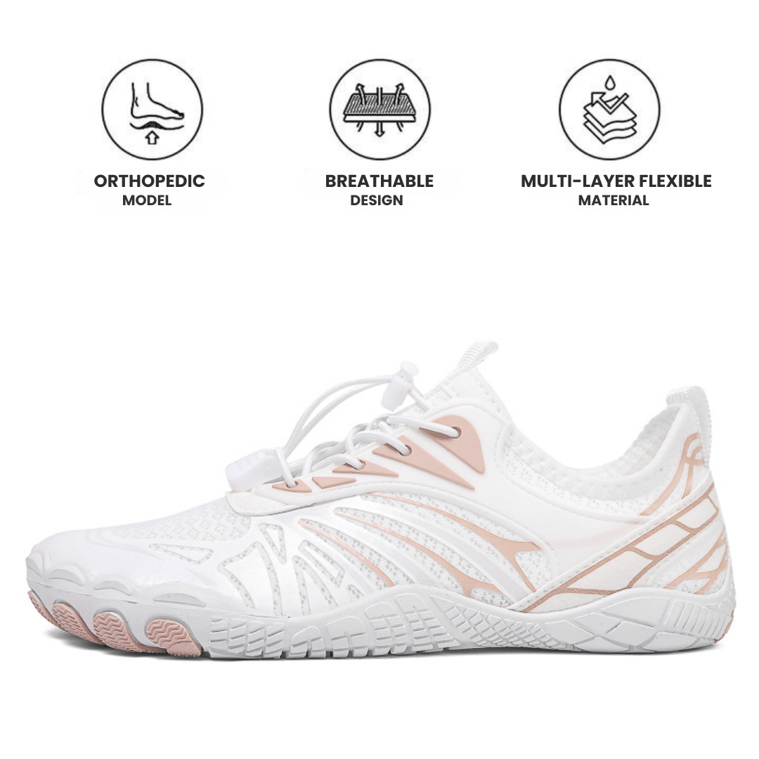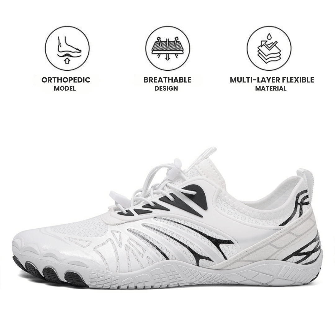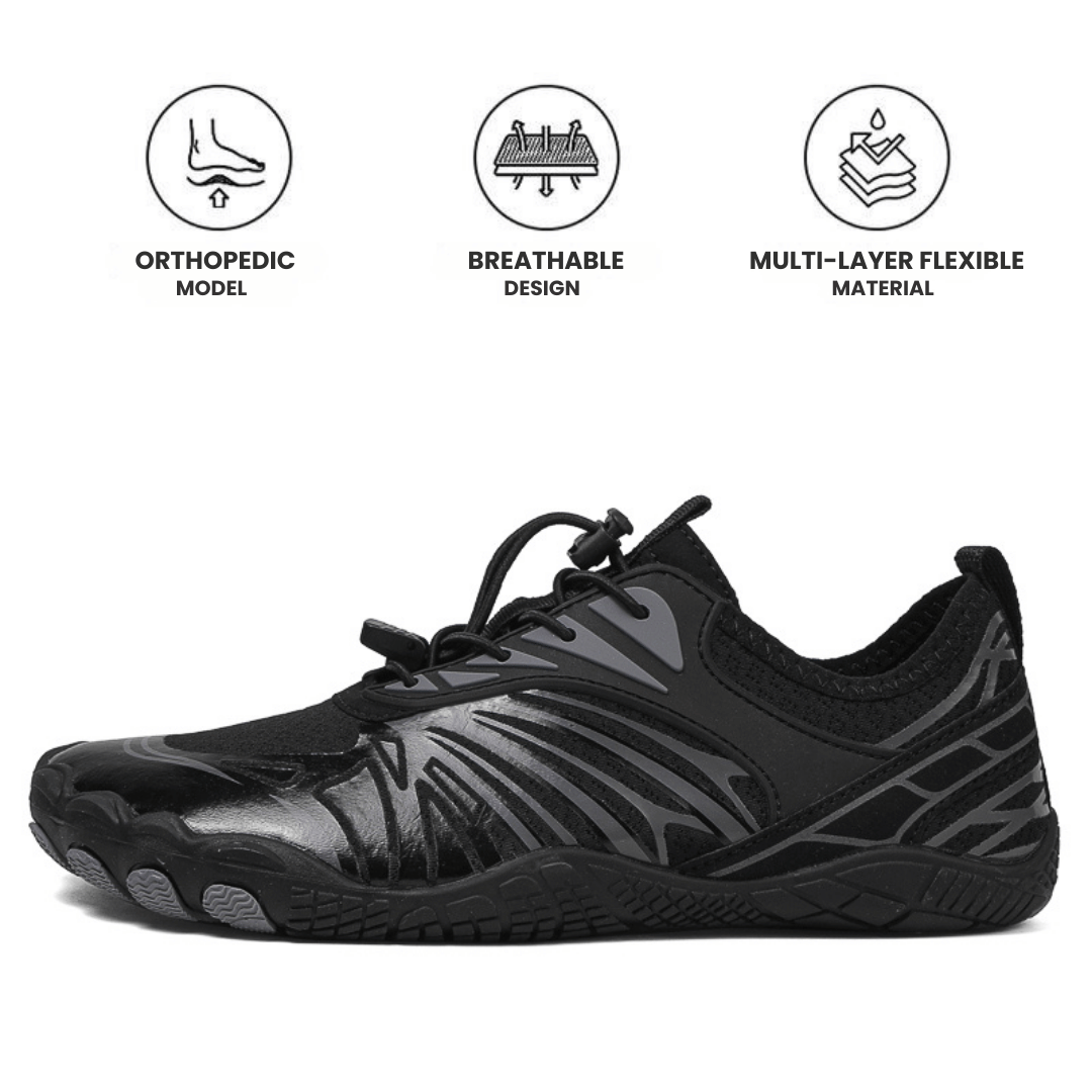 Our solution: Trek Pro is an ergonomic, orthopedic and pain-relieving barefoot shoe that gives your feet space and strengthens your natural foot muscles to prevent misalignments. The double plus: Trek Pro is also suitable for the gym, the next hike, yoga and many other sporting activities.